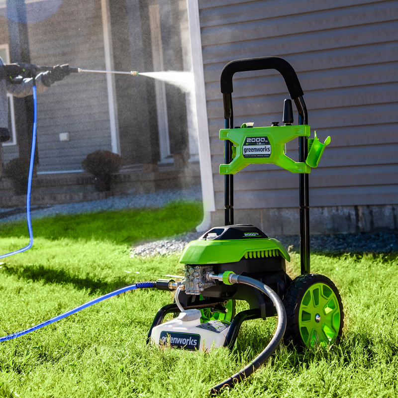 Greenworks Tools offers a wide selection of Pressure washers, all with easy push start buttons. No pulling, no priming, no gas and no fumes. The Greenworks 80V 3000 PSI Pressure Washer is equipped with a brushless motor and pump to provide you with more power and higher efficiency. Ditch the gas and the cord with this battery operated pressure washer, 3000 PSI and up to 2.0 GPM its sure to get the job done. Just another way Greenworks Tools makes life easier.