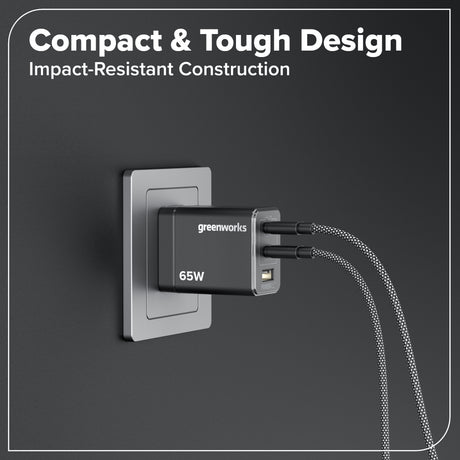 Greenworks POWERALL 65W Charger, 2x USB-C ports and USB-A Port