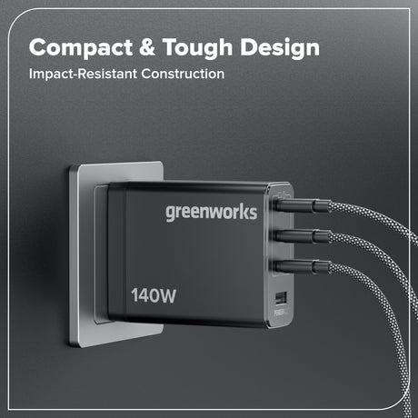 Greenworks POWERALL 140W Charger, 3x USB-C ports and USB-A Port