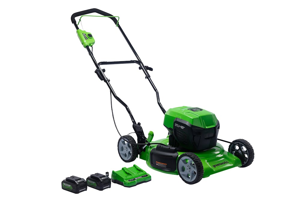 Welcome to a Life. Powered. by Greenworks. The Greenworks 24V PowerAll™ lithium-ion platform powers over 125+ indoor & outdoor 24V products, including lawnmowers, blowers, string trimmers, chainsaws, power tools and more! Our 24V batteries provide 20% more power and 35% more run-time, and deliver fade-free power with no memory loss after charging. Kick gas to the curb and go green with no fumes, no mixing, no maintenance, and no pull cords. Let Greenworks help you take the work out of yard work. Keep your lawn looking incredible with the Greenworks48V (2 x 24V) 19" Brushless Push Lawn Mower, (2) 24V 4.0Ah Batteries and Charger Included. This cordless battery operated lawnmower features a steel deck, 7 cutting heights, innovative SmartCut technology, push button start and folding handles for compact storage. When looking for tools and outdoor power equipment, we know you’re thinking about quality. That’s why Greenworks backs our 24V tools with a 3 Year Limited Tool & Battery Warranty.
