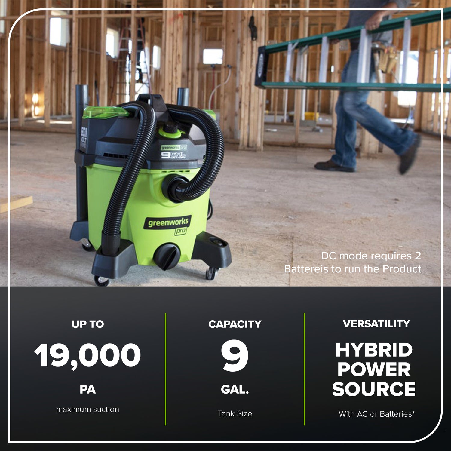 - Does it work without batteries (60V 9-Gallon AC/DC Wet/Dry Vac)?
