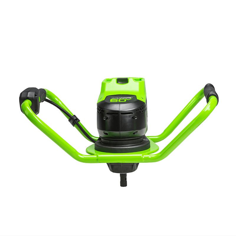 Greenworks' 60V electric earth auger features a hardened steel auger and high torque brushless motor, ideal for digging holes in landscapes. The brushless motor delivers more torque and power with no maintenance, while remaining interchangeable with all Greenworks Pro 60V tools. The earth auger makes light work of digging post holes for fences or landscaping projects, saving you effort while keeping your hands clean and fingers free of blisters.
