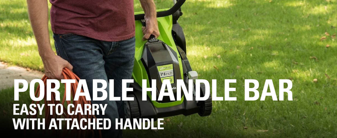- [SPACE-SAVING STORAGE] Ergonomic easy-to-use controls guarantee ultimate comfort while operating your electric lawn mower. Plus, use up to 70% less space in your garage with folding handles for compact vertical storage.