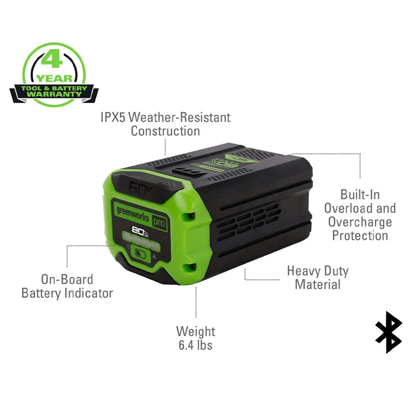• Pair with the Greenworks Tools companion app for real-time information on your battery & tools