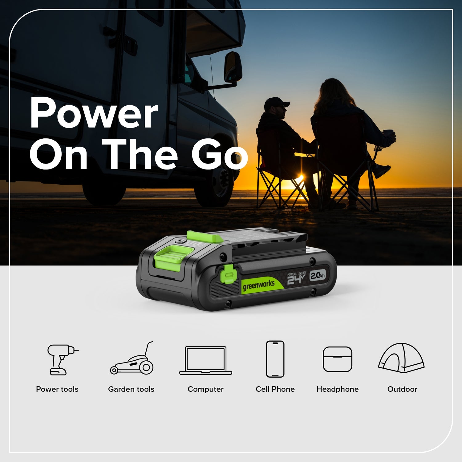 MULTI-TOOL COMPATIBILITY: One removable battery powers 150+ Greenworks 24V tools for ultimate flexibility across your workspace.