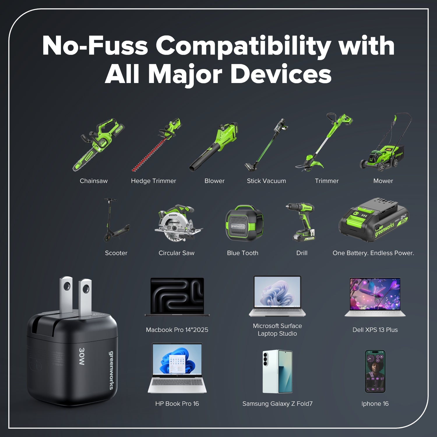 USB-C FAST CHARGING: 30W USB-C fast charger ensures quick, effortless charging, while the battery doubles as a USB-C power bank for phones, tablets, and more.