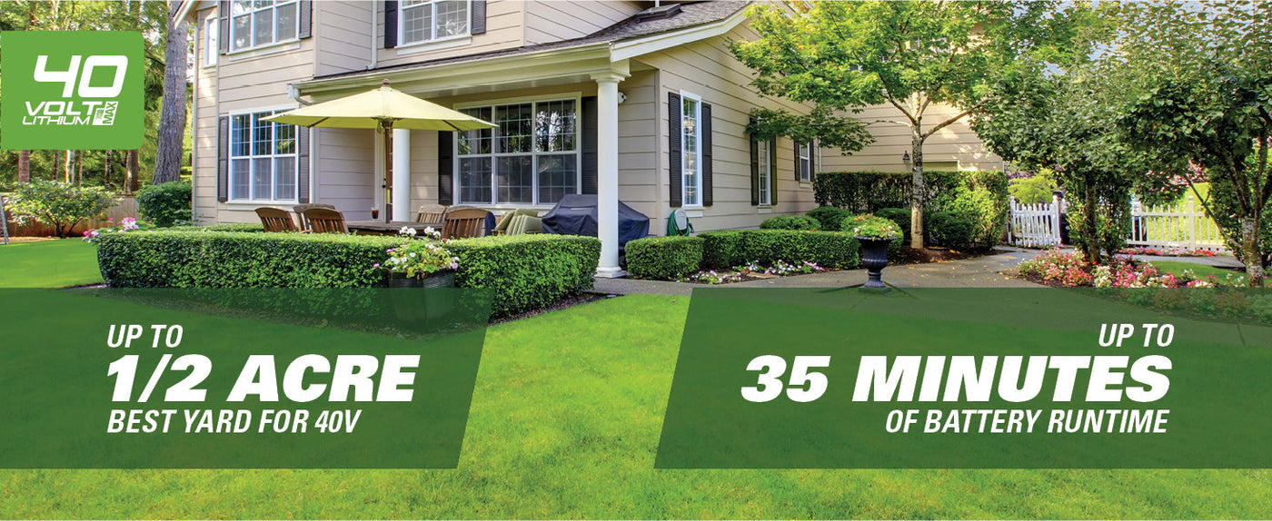 Welcome to a Life. Powered. by Greenworks. Kick gas to the curb and go green with no fumes, no mixing, no maintenance, and no pull cords. The Greenworks 40V lithium-ion platform powers over 60+ products, including lawnmowers, blowers, string trimmers, chainsaws, hedge trimmers, and much more! Delivering the power you need with fade-free performance and no memory loss after charging. Let Greenworks help you take the work out of yard work. Trim your lawn with ease using the Greenworks 40V 12" String Trimmer, 2.0Ah Battery and Charger. This cordless grass trimmer features a 12-inch cutting path, telescoping twist-to-edge shaft and a single line auto feed trimmer head. Built to last; The Greenworks 40V platform comes with a 3-year tool & battery warranty to protect your investment.