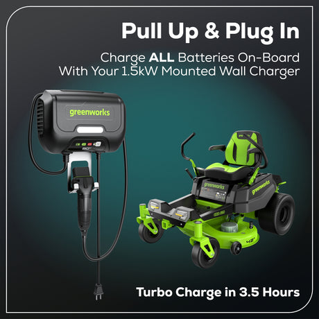 60V 42" Crossover T Tractor Riding Lawn Mower, (6) 8.0Ah Batteries and (3) Dual Port Turbo Chargers