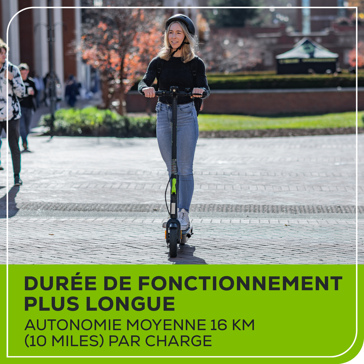 · Autonomie moyenne : jusqu'à 16 km (10 miles) par charge