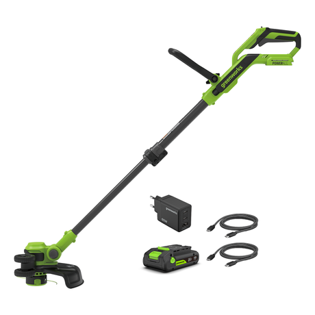 24V 12" Brushless String Trimmer, 3.0Ah Battery and 65W Type-C Charger with (2) 3-ft Cables Included