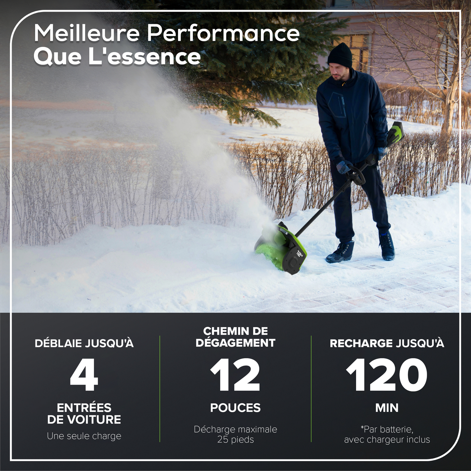 Pelle à neige 40 V, 12 pouces avec volets directionnels, batterie 4,0 Ah et chargeur inclus