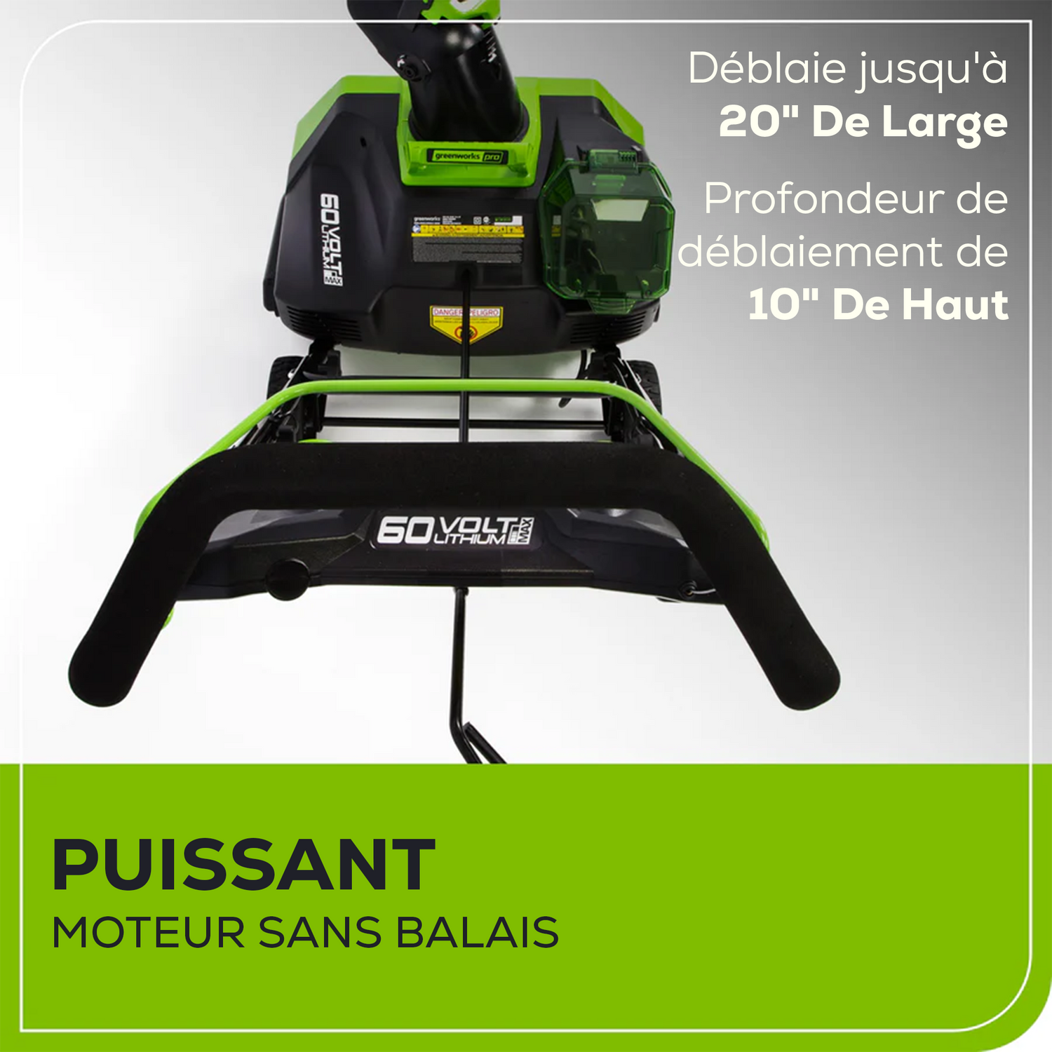 - COMPREND : Souffleuse à neige 60 V 20 pouces et manuel d'instrctions.