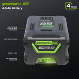 - Compatible avec tous les outils Greenworks 60 V - retirez la batterie de votre tondeuse sans fil et insérez-la dans votre coupe-herbes sans fil, votre souffleur à feuilles, votre scie à chaîne et plus encore