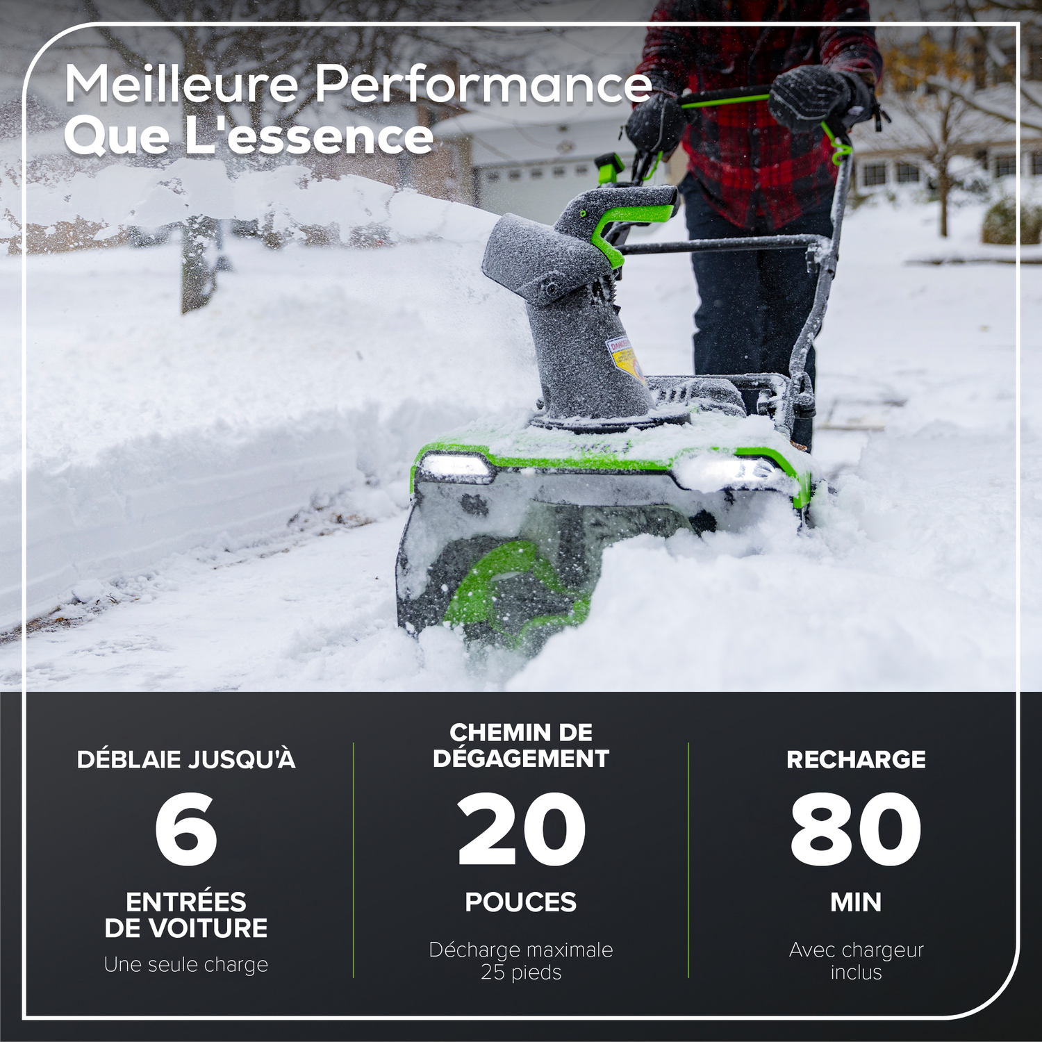 • Souffleuse à neige sans balais 60 V 20 pouces
