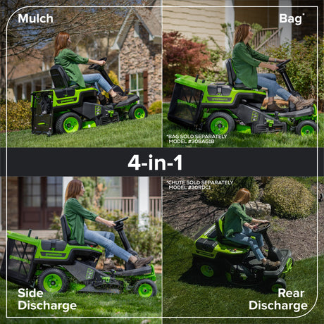 Tracteur à gazon autoporté CrossoverT 80 V, 30 pouces, batteries (4) 6,0 Ah et chargeur 600 W inclus