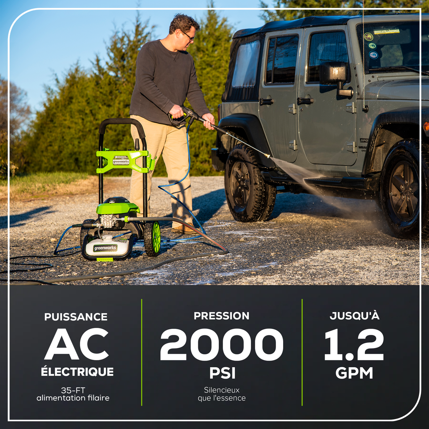 - Laveuse à pression électrique 2 000 PSI (lb/po²), 1,2 GPM, 14 A