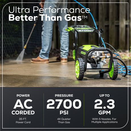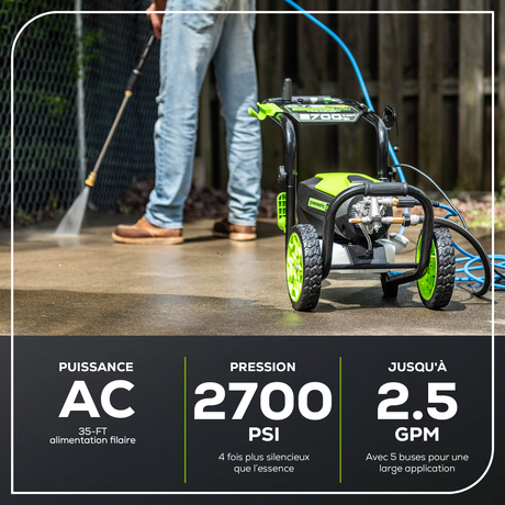 Laveuse à pression électrique 2 700 PSI (lb/po²), 2,3 GPM, 14 A – GPW2700