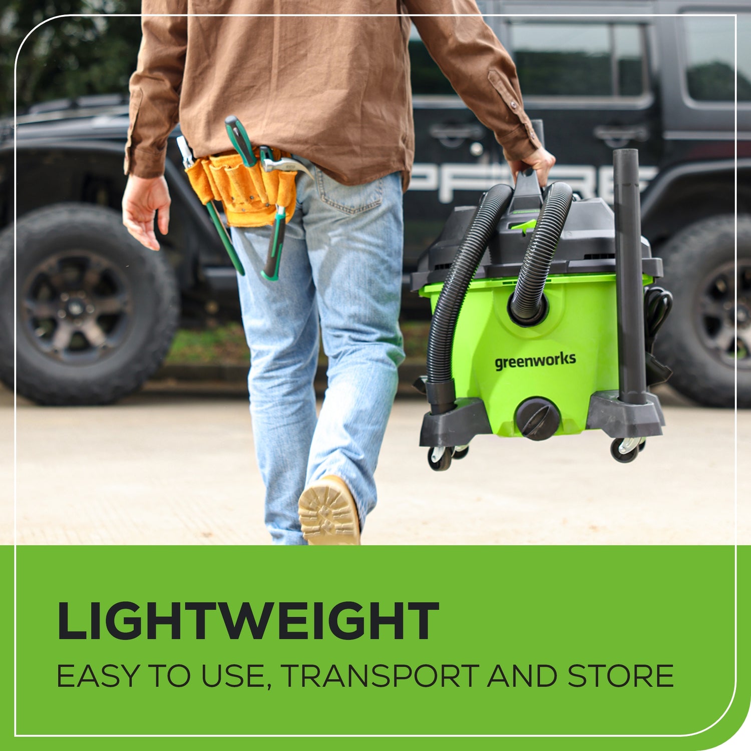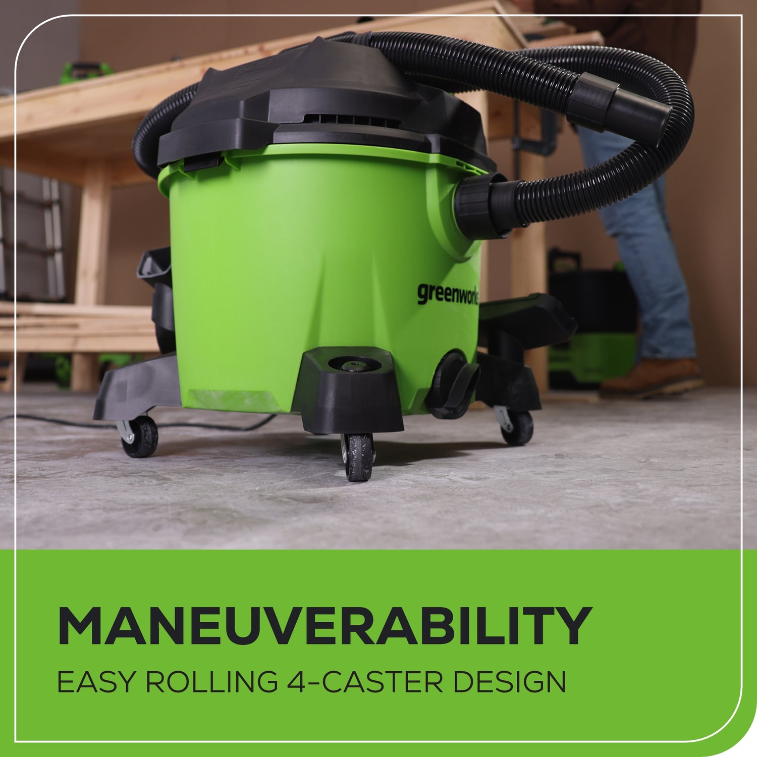• Un aspirateur eau/sec robuste à deux étages de 34 L (9 gallons) fonctionne plus silencieusement pour les tâches de nettoyage.