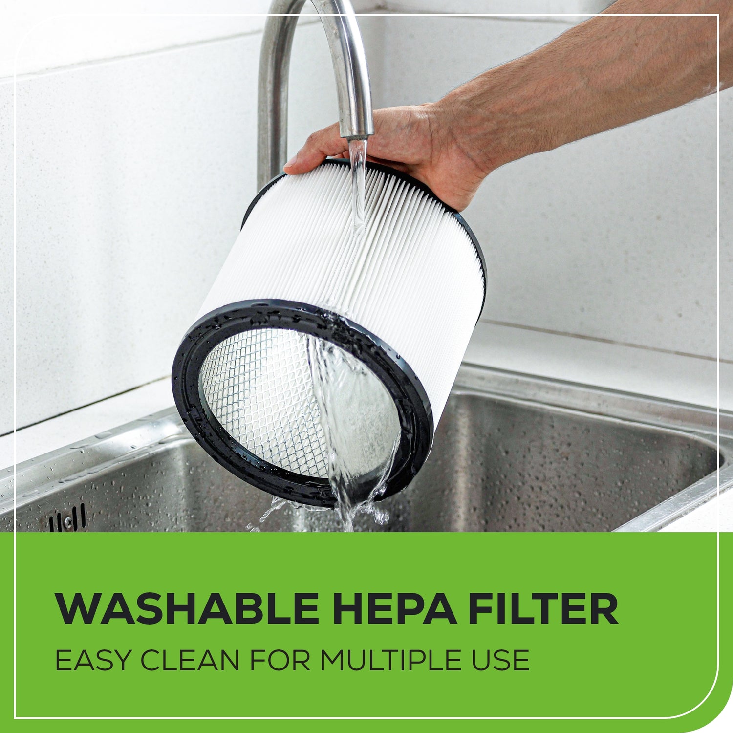 • Veuillez vous référer au manuel d’instructions pour le numéro de pièce correct. Entre-temps, suivez ces étapes pour nettoyer votre filtre ! NETTOYAGE D'UN FILTRE SEC 1. Certains débris secs peuvent être enlevés sans enlever le filtre de l'aspirateur. Appuyez simplement sur le dessus du couvercle lorsque l'aspirateur est éteint. 2. Pour des résultats de nettoyage optimaux, en particulier en cas d'accumulation de poussière, nettoyez le filtre dans un espace ouvert. Il est préférable de le faire à l'extérieur, pas à l'intérieur des espaces de vie. 3. Une fois le filtre retiré, tapotez-le doucement contre la paroi intérieure du réservoir de collecte de poussière pour détacher les débris secs. Ils vont tomber. 4. Pour un nettoyage plus approfondi des poussières fines (sans débris), rincez le filtre à l'eau tel que décrit dans la section « Nettoyage d'un filtre humide » du manuel.