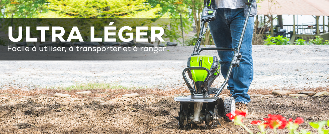 Le cultivateur 80 V, 10 pouces est doté d'un moteur sans balais pour plus de couple, un fonctionnement silencieux et une durée de vie plus longue. Conçu avec quatre dents en acier rotatives vers l'avant, amovibles et réglables avec une largeur de labourage de 10 pouces et une profondeur de labourage de 5 pouces. Il démarre également à la poussée d'un bouton. Passez moins de temps à travailler sur votre pelouse ou votre jardin et plus de temps à profiter des résultats avec le motoculteur Greenworks 80 V 10 po. Il n'a pas de cordon d'alimentation et ne consomme pas de gaz, vous pouvez donc vous concentrer sur la tâche à accomplir. coin de votre propriété.