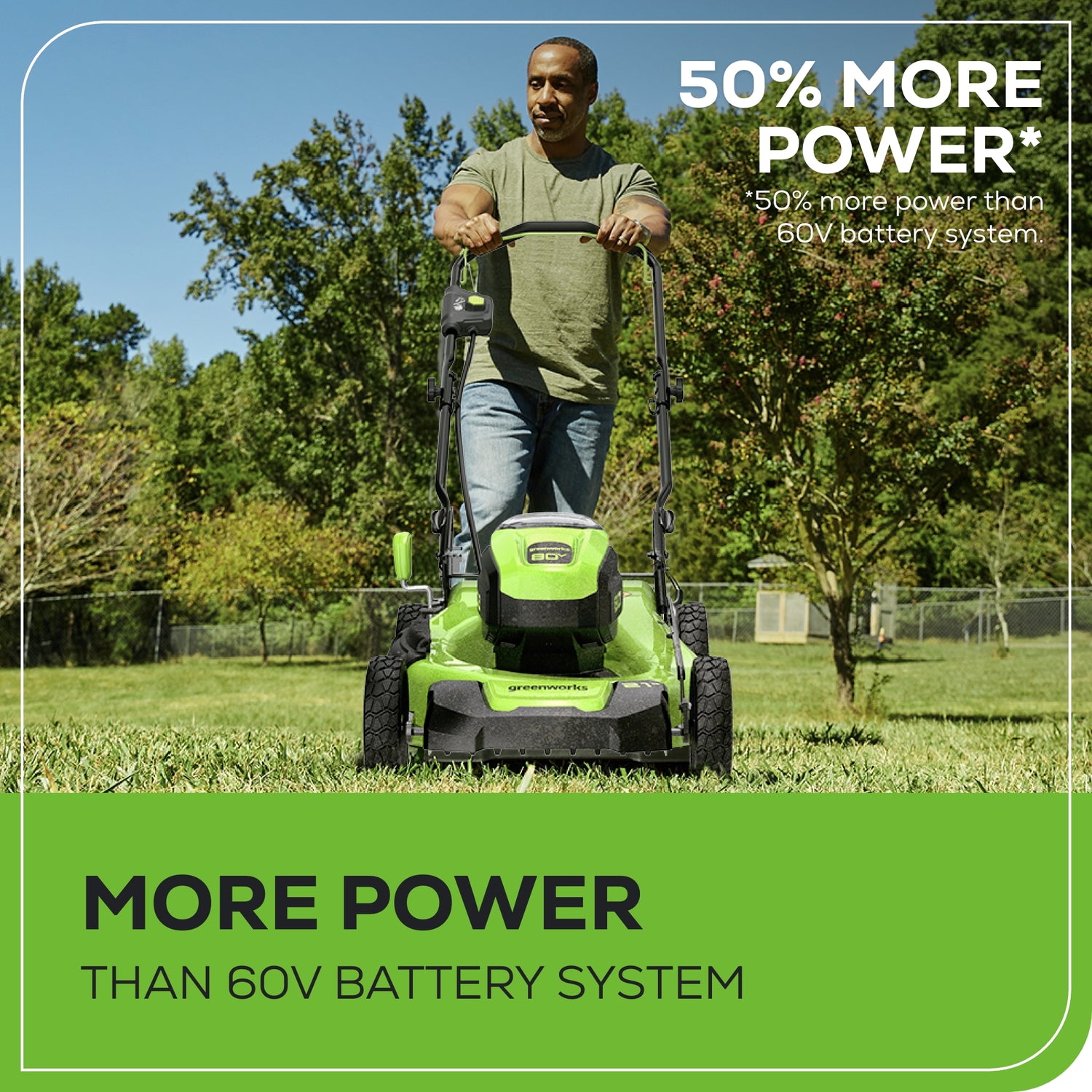 - NE JAMAIS ARRÊTER DE COUPER Port de batterie individuel pour accepter toutes vos batteries Greeenworks 80V. Jusqu'à 45 minutes d'autonomie et un temps de charge de 60 minutes.