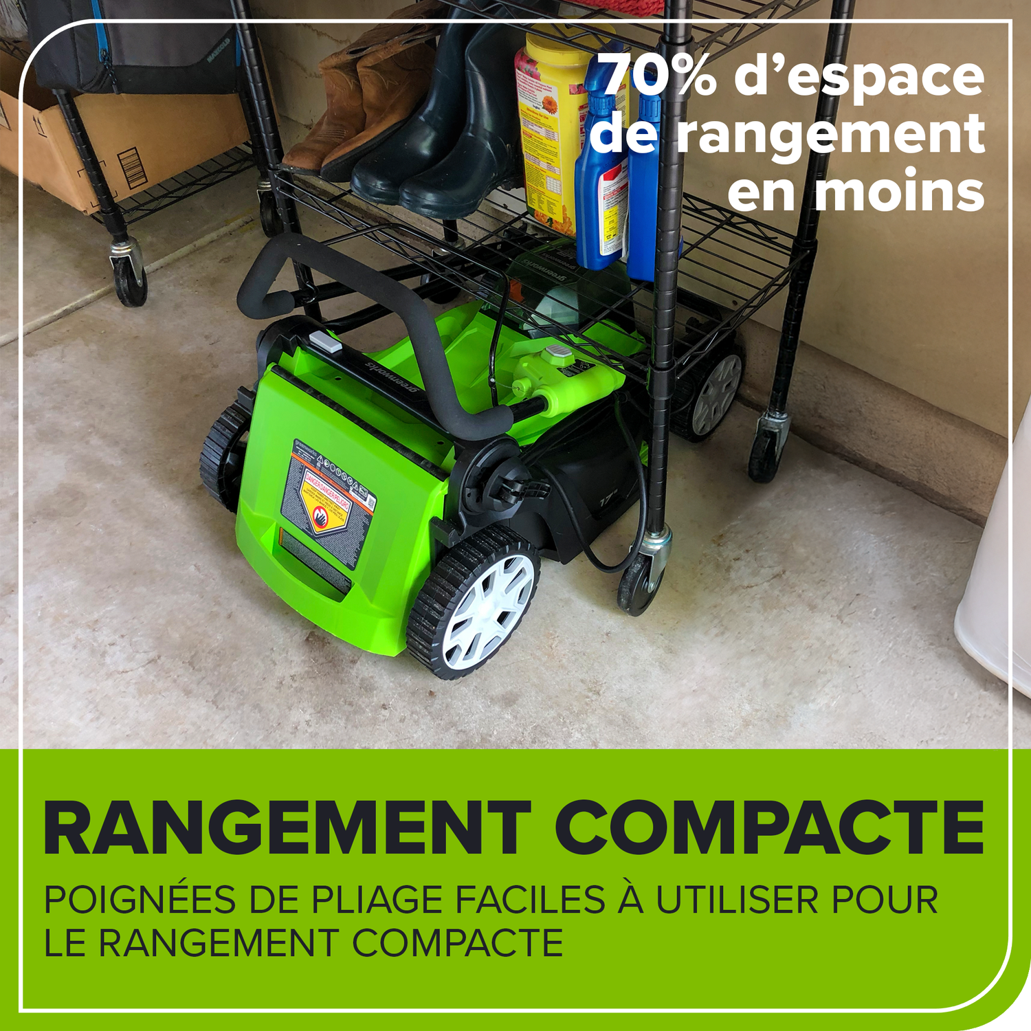 Bienvenue à La Vie. Propulsée. par Greenworks. La plateforme lithium-ion Greenworks PowerAll™ 24 V alimente plus de 125 produits 24 V d'intérieur et d'extérieur, dont des tondeuses, des souffleurs, des coupe-herbes, des scies à chaîne, des outils électriques et bien plus encore ! Nos batteries 24 V offrent 20 % de puissance et 35 % d'autonomie supplémentaires, sans perte de charge ni perte de charge. Passez à l'action et passez au vert : sans fumée, sans mélange, sans entretien et sans cordon. Laissez Greenworks vous simplifier la vie dans votre jardin. Gardez votre pelouse impeccable avec la tondeuse poussée Greenworks 2 x 24 V (48 V) 17" , 2 batteries USB 4 Ah et un chargeur double port 4 A. Cette tondeuse sans fil à batterie est dotée d'un plateau en polyéthylène, de 6 hauteurs de coupe, d'un démarrage par bouton-poussoir et de poignées repliables pour un rangement compact. Lorsque vous recherchez des outils et des équipements motorisés d'extérieur, nous savons que la qualité est votre priorité. C'est pourquoi Greenworks offre une garantie limitée de 3 ans sur ses outils et batteries 24 V.