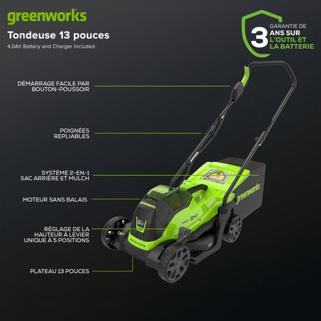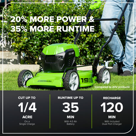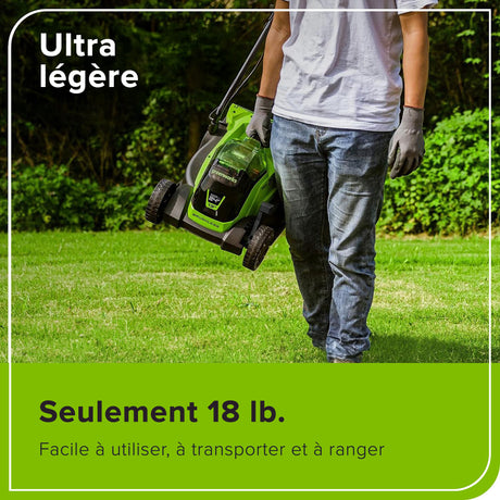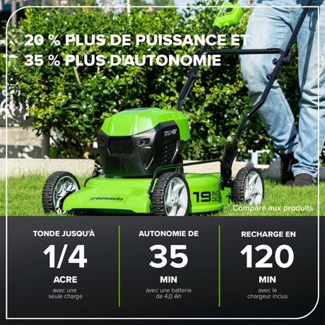 Tondeuse poussée sans balais Greenworks 40 V, 20 pouces, batterie 4,0 Ah et chargeur inclus