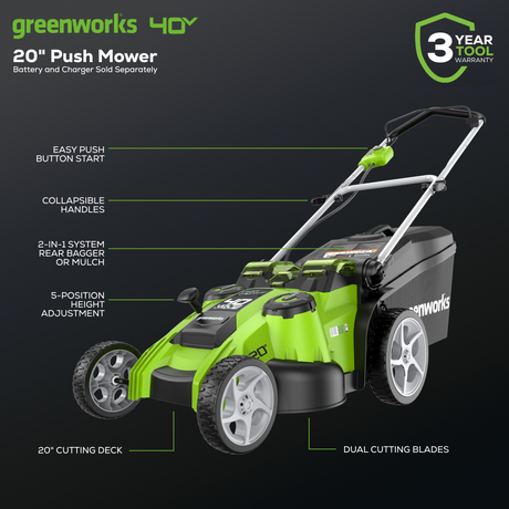 Tondeuse à double lame 40 V, 20 pouces, batteries et chargeur 2,0 Ah et 4,0 Ah inclus