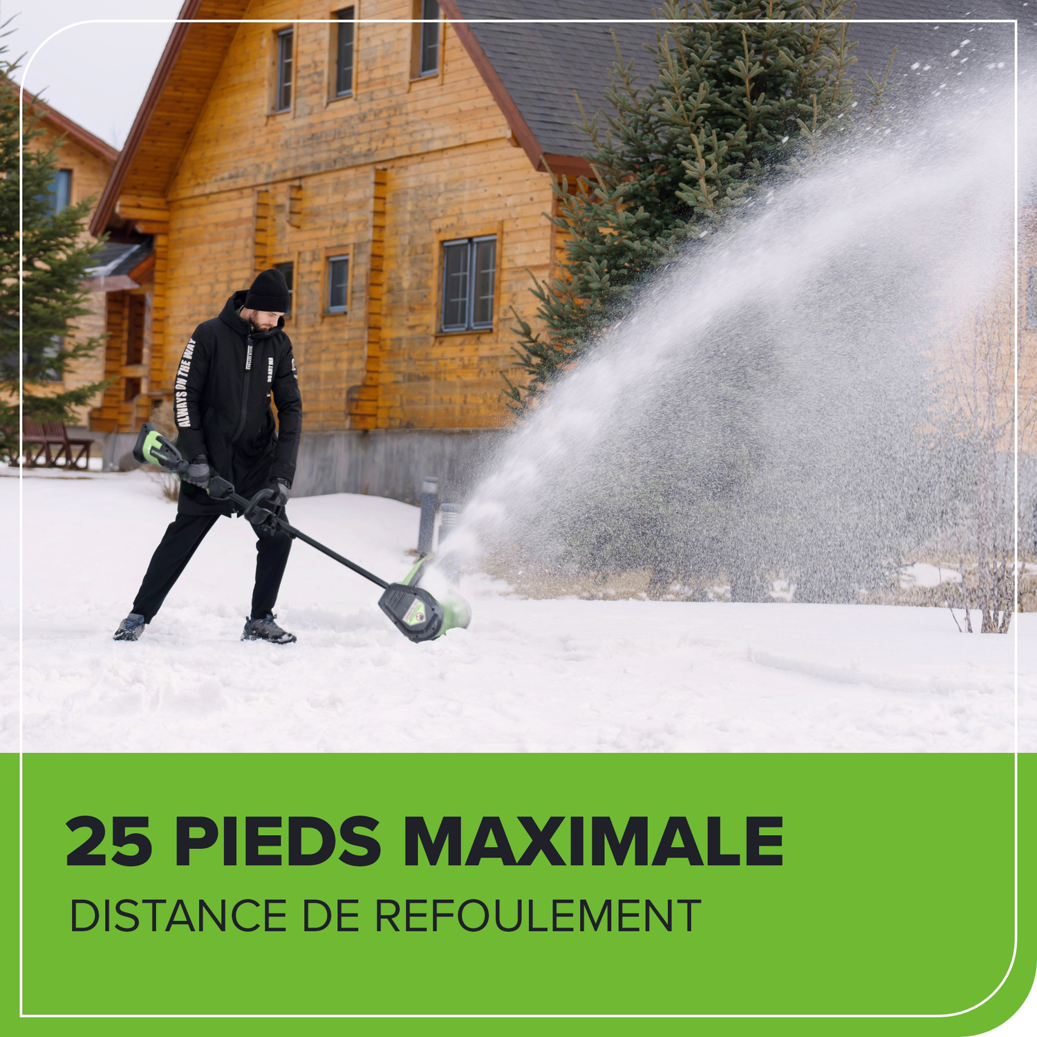 Bienvenue à La Vie. Propulsée. Par Greenworks. Déneigez vos trottoirs et allées plus facilement cet hiver grâce à la pelle à neige 40 V de 12 pouces avec volets directionnels. Dotée d'un moteur sans balais haute performance de 1,5 kW et d'une turbine à deux vitesses atteignant 1 800 tr/min, cette pelle à neige ne manquera pas de vous impressionner. Ses lumières DEL puissantes et son fonctionnement silencieux la rendent pratique à utiliser tôt le matin ou tard le soir. Alimentée par une batterie lithium-ion 40 V, elle offre une largeur de déneigement de 12 po. (30 cm) et une profondeur de 8 po. (20 cm). Dites adieu à l'essence cet hiver et bonjour à Greenworks ! Cette pelle à neige est compatible avec l'ensemble du système d'outils et de batteries Greenworks 40 V. Bénéficiant d'une garantie de 3 ans, cette pelle à neige est conçue pour durer.