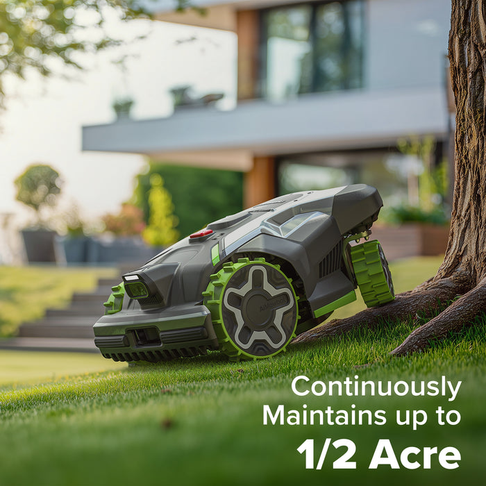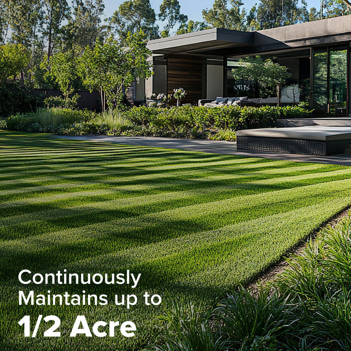 Designed to continuously maintain lawns up to ½ acre, using long-lasting batteries to support extended mowing sessions with minimal user intervention.