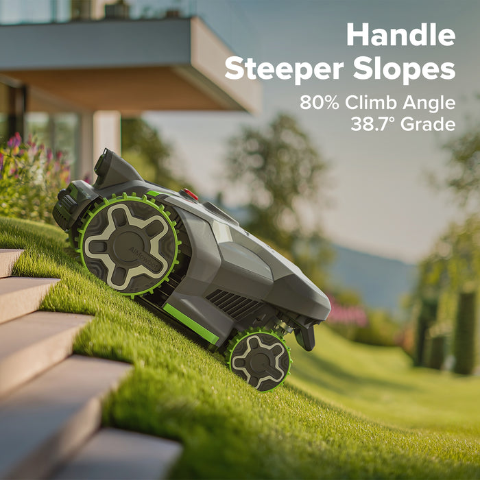 Engineered to manage inclines up to 45% grade (24°), providing reliable performance on uneven terrain and hilly landscapes.
