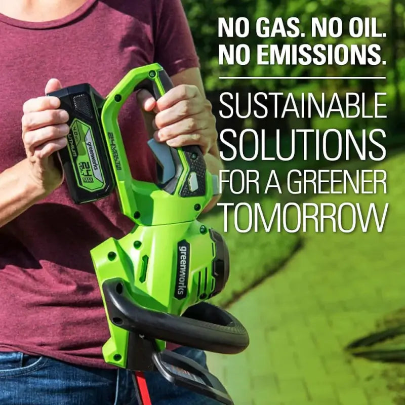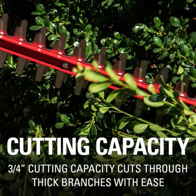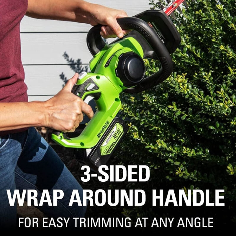 Le taille-haie 24 V de 22 po est doté de lames en acier robustes de 22 po à double action, découpées au laser, pour des performances optimales et des résultats professionnels. Il est conçu avec une capacité de coupe de ¾" qui coupe facilement les branches épaisses. La poignée arrière ergonomique rotative permet une plus grande flexibilité lors de la taille des côtés des haies et vous permet de tailler sous plusieurs angles. La plateforme Greenworks 24V POWERALL™ est livrée avec un outil limité à 3 ans pour protéger votre investissement.