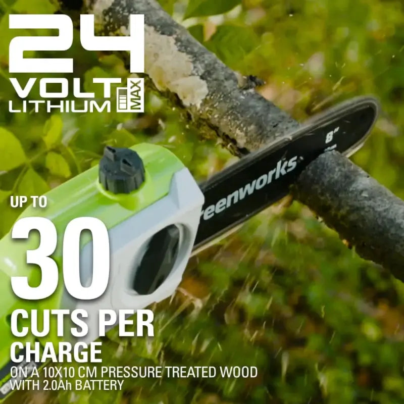 Scie à perche 24 V, 8 pouces avec accessoire taille-haie 24 V, 20 pouces, batterie USB 2,0 Ah et chargeur inclus