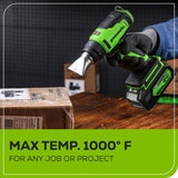 • Sûr et stable : ce pistolet thermique sans fil utilise un élément chauffant PTC pour une protection supérieure résistante à la chaleur et refroidit rapidement en 5 secondes après l'avoir éteint.