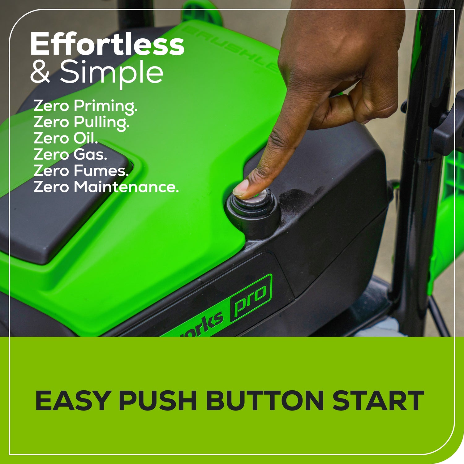 Bienvenue à La Vie. Propulsé. Par Greenworks. Les laveuses à pression résidentielles à batterie les plus puissants au monde ! Le nettoyage ménager intensif nécessite des outils aussi sérieux que vous. Qu'il s'agisse de la voiture, de la maison, de la terrasse ou de l'entrée, vos affaires brilleront à coup sûr. La laveuse à pression sans balais Greenworks, 3 000 PSI (lb/po²), 2,3 GPM, 14 A ne manquera pas d'impressionner. Bénéficiant d'un débit d'eau allant jusqu'à 2,3 GPM, elle est puissante, fiable et conçue pour les tâches de nettoyage les plus difficiles. Avec un démarrage par bouton-poussoir sans tracas, elle s'allume facilement et se met au travail rapidement. Elle est doté d'un moteur et d'une pompe sans balai à fonctionnement continu de type « gaz » ; la laveuse à pression fonctionnera de manière constante lorsque l'appareil est en position « marche » et une soupape de décharge thermique purge l'eau chaude de la pompe pour la maintenir au frais. Avec un pistolet pulvérisateur en métal robuste, elle est solide et durable, et la pompe est dotée d'un revêtement anodisé résistant à la corrosion. Elle est équipée d'un cordon d'alimentation trés long de 35 pieds avec un disjoncteur différentiel de fuite à la terre (DDFT) en ligne et d'un boyau anti-pliage de 25 pieds sans tracas qui élimine les enchevêtrements de boyaux frustrants, de roues increvables de 10 pouces pour un transport facile, d'un réservoir de savon intégré de 5 litres et d'un rangement d'accessoires à bord. Bénéficiant d'une garantie moteur de 10 ans et d'une garantie outil de 3 ans, la meilleure du secteur, elle est conçue pour résister à la saleté et à la crasse les plus tenaces pendant des années.