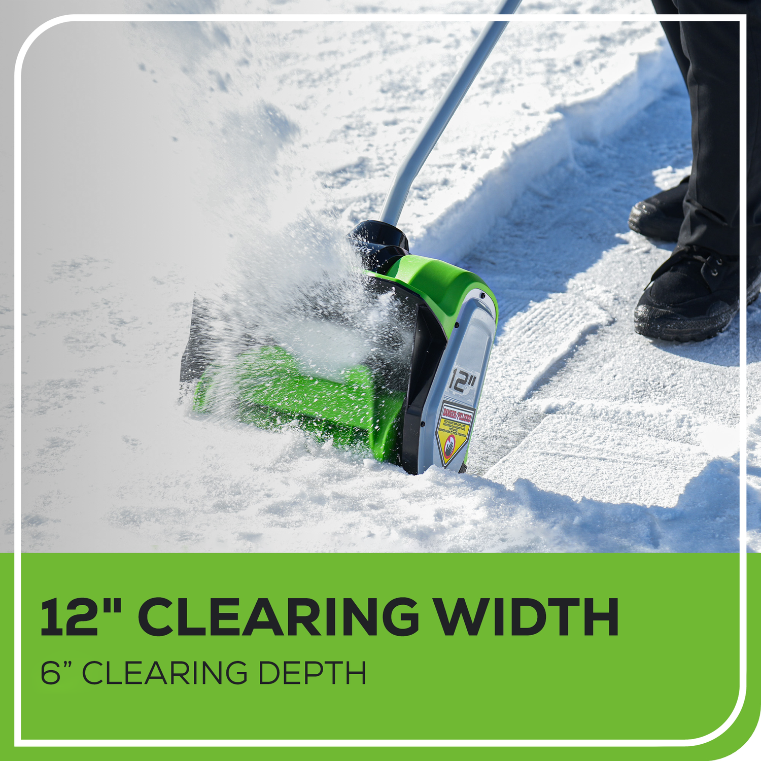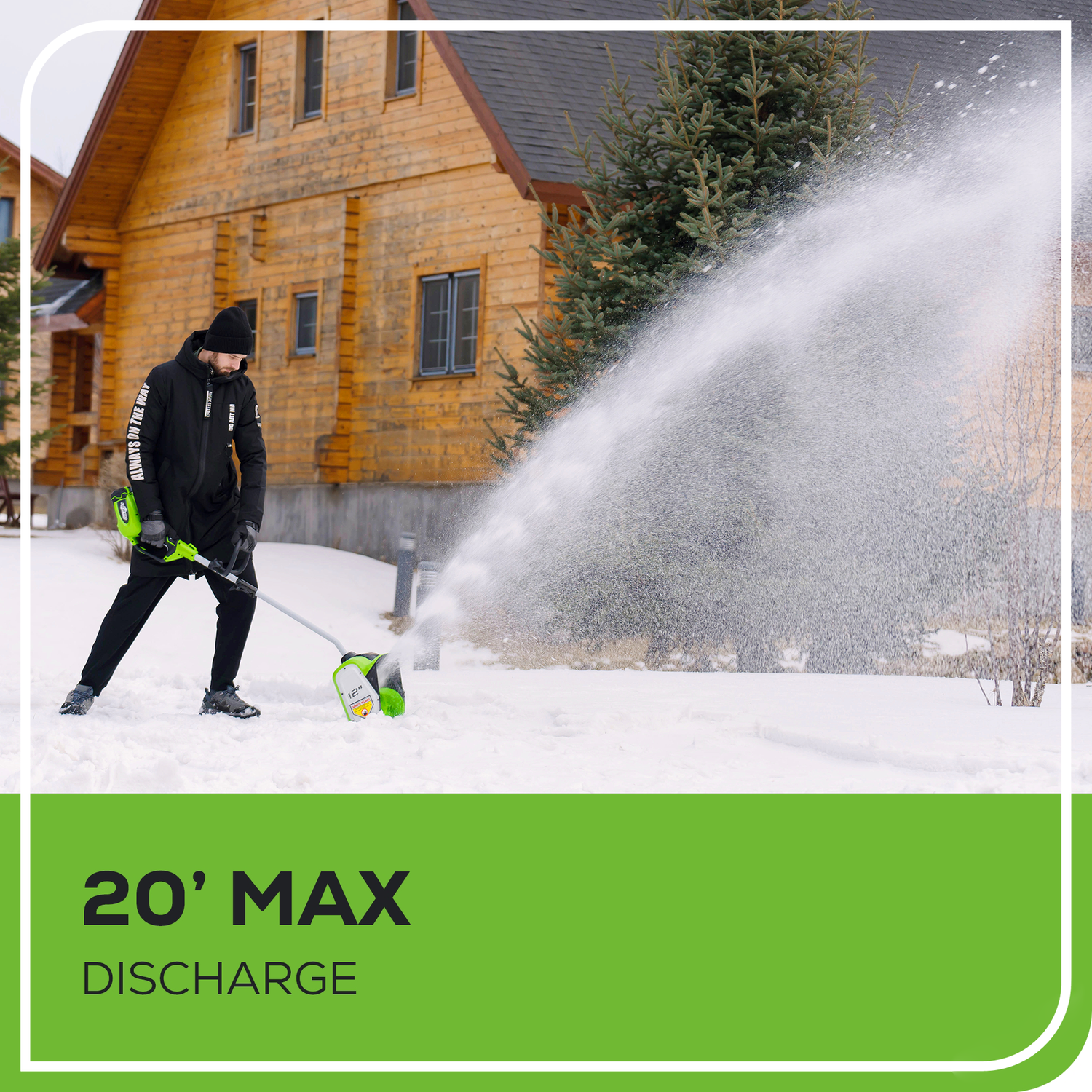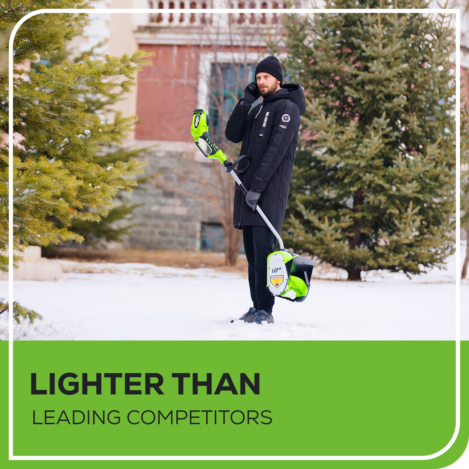 Bienvenue à La Vie. Propulsée. Par Greenworks. Facilitez le dégagement des trottoirs et des entrées cet hiver avec la pelle à neige sans balais Greenworks 40 V 12 po. Construite avec un moteur sans balais à haut rendement de 1,1 kW offrant des vitesses de turbine allant jusqu'à 1 800 tr/min, cette pelle à neige impressionnera à coup sûr. Son fonctionnement silencieux la rend pratique pour à utiliser tôt le matin ou tard le soir. Alimenté par une batterie lithium-ion de 40 V, il présente une largeur de dégagement de 12 po. et une profondeur de dégagement de 4 po. Dites adieu au gaz cet hiver et bonjour à Greenworks. Cette pelle à neige est compatible avec le système complet d'outils et de batteries Greenworks 40V (vendu au Canada). Commencez avec une trousse à outils, puis ajoutez un équipement contenant uniquement des outils. Bénéficiant d'une garantie de 3 ans, cette pelle à neige est conçue pour durer des années.