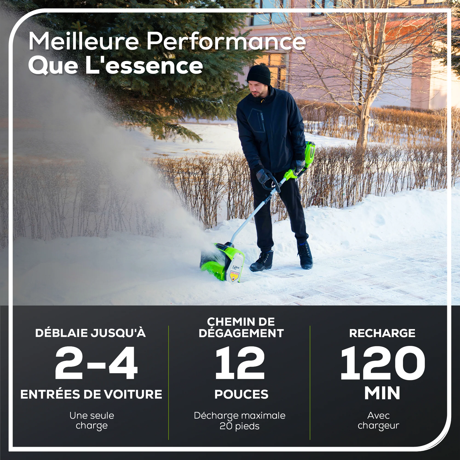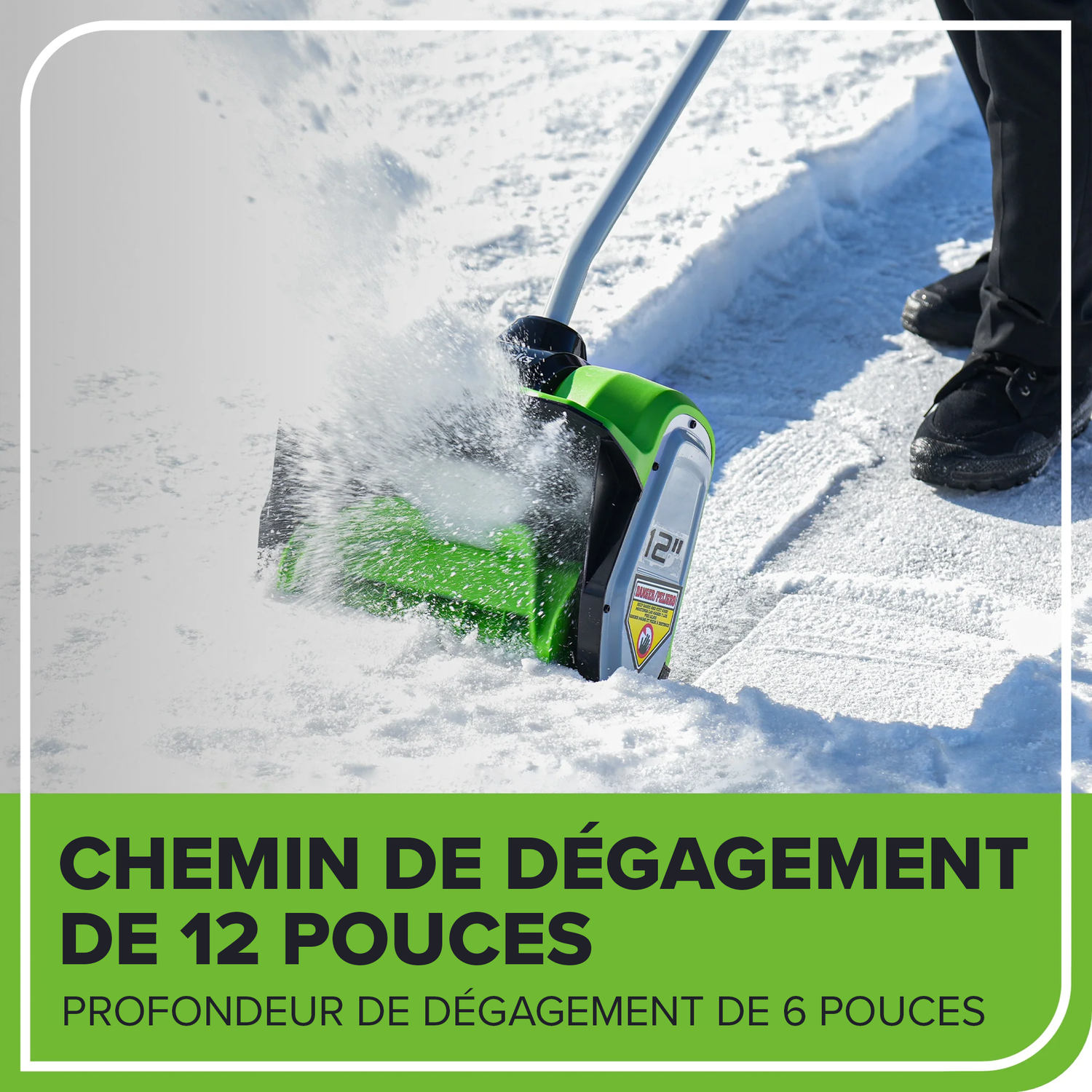 - Pelle à neige sans balais, 40 V, 12 pouces