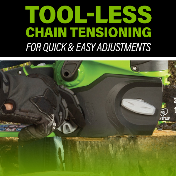 - ✓Tension de chaîne sans outil - Pour des réglages rapides afin que vous puissiez revenir à la tâche en cours.