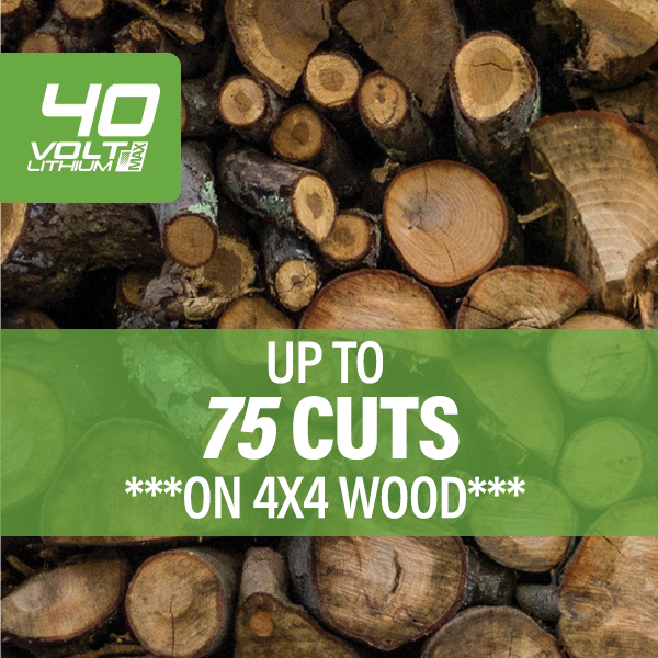 L'autonomie d'une scie à chaîne est mesurée en coupes par charge. Le nombre de coupes par charge ou « autonomie » que vous obtenez dépend de la charge agissant sur la scie à chaîne (c'est-à-dire l'épaisseur et le type de bois à couper), car la scie à chaîne utilise plus d'énergie de la batterie sur des objets plus durs et plus épais à couper.