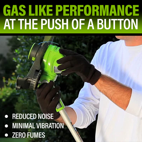 Bienvenue à La Vie. Propulsée. Par Greenworks. Donnez un coup de pouce au trottoir et passez au vert sans fumées, sans mélange, sans entretien et sans cordons de traction. La plate-forme lithium-ion Greenworks 40 V alimente plus de 60 produits, notamment des tondeuses, des souffleurs, des coupe-herbes, des scies à chaîne, des taille-haies et bien plus encore ! Offre la puissance dont vous avez besoin avec des performances sans décoloration et sans perte de mémoire après la charge. Laissez Greenworks vous aider à simplifier les travaux de jardinage. Taillez votre pelouse en toute simplicité grâce au coupe-herbe Greenworks 40 V 13 po, batterie 2,0 Ah et chargeur inclus. Ce coupe-herbe sans fil est doté d'un chemin de coupe de 13 pouces, d'une tête rotative pour les bordures et d'une tête de coupe à alimentation automatique à fil unique. Conçu pour durer La plate-forme Greenworks 40 V est livrée avec une garantie de 3 ans sur les outils et la batterie pour protéger votre investissement.