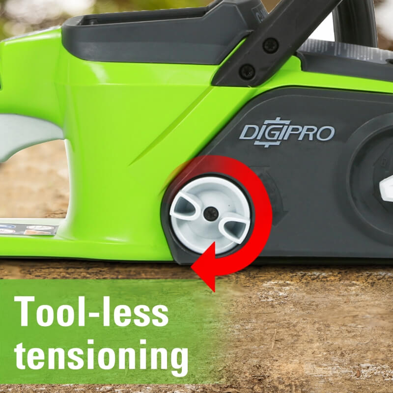 - ✓Tension de chaîne sans outil - Pour des réglages rapides afin que vous puissiez revenir à la tâche en cours.