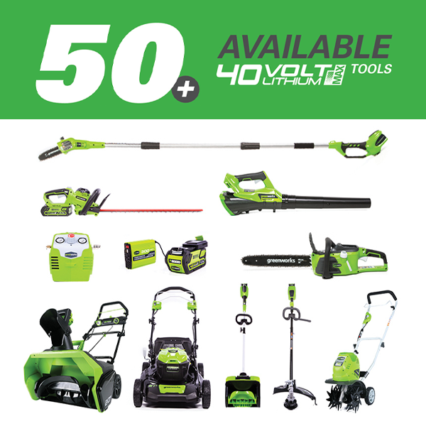 Les outils électriques d'extérieur sans fil sont idéaux pour les propriétaires comme vous qui simplifient et se concentrent sur ce qui est essentiel pour tirer le meilleur parti de la vie. La famille d'outils Greenworks 40 V est construite avec une construction de poids moyen et des moteurs à haut rendement. La plate-forme lithium-ion Greenworks 40 V alimente plus de 40 produits d'extérieur, notamment des tondeuses, des souffleurs, des coupe-herbes, des scies à chaîne, des taille-haies et bien plus encore ! La batterie lithium-ion 40 V fournit la puissance dont vous avez besoin et offre une puissance sans décoloration et sans perte de mémoire après la charge. La plateforme Greenworks 40 V est livrée avec une garantie outil/batterie de 3 ans pour protéger votre investissement. De fabrication de haute qualité, ces produits sont faciles à démarrer et plus légers que les produits à gaz auxquels vous êtes habitué, ce qui rend votre journée de travail dans le jardin beaucoup plus facile. Parfaits pour les terrains allant jusqu'à ⅓ d'acre, les outils Greenworks 40 V sont légers, démarrent instantanément et ne nécessitent pratiquement aucun entretien – pas d'essence, pas d'huile, pas de gâchis – mais fournissent toujours une puissance semblable à celle du gaz.