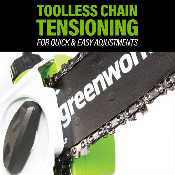 - ✓Tension de chaîne sans outil - Pour des réglages rapides afin que vous puissiez revenir à la tâche en cours.