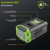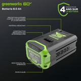- Associez-le à l'application compagnon Greenworks Tools pour obtenir des informations en temps réel sur votre batterie et vos outils.