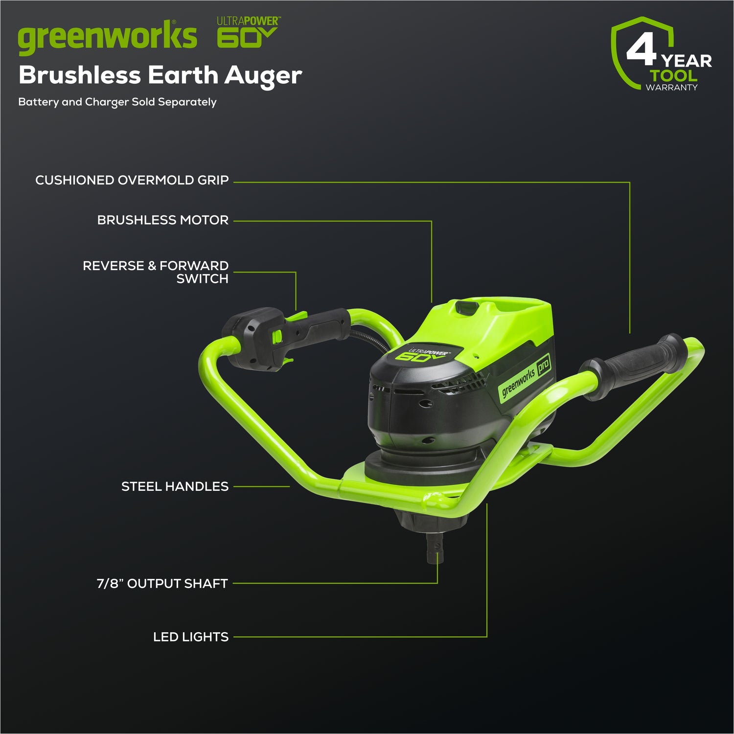 Alimentée par une batterie lithium-ion Greenworks Pro 60V, cette tarière sans fil Greenworks Pro est le choix idéal pour les propriétaires qui veulent la commodité et les avantages d'aller sans fil pour les travaux de jardinage quotidiens, mais aussi la confiance nécessaire pour entreprendre des projets parfois difficiles, sans bruit, fumées ou émissions nocives. La vis sans balai Greenworks 60V est dotée d'un moteur sans balais à couple élevé, idéal pour le creusement de clôtures résidentielles ou pour l'aménagement paysager. La technologie avancée de moteur sans balais fournit plus de couple et de puissance sans entretien.