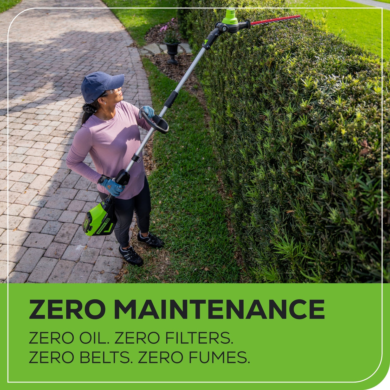 Alimentée par une batterie lithium-ion Greenworks Pro 60 V, cette scie à perche et taille-haie sans fil Greenworks Pro offre la puissance et les performances des scies à essence typiques, sans le bruit, les fumées ou les émissions nocives. La puissante plateforme de batterie sans fil Greenworks Pro 60 V vous offre toute la puissance dont vous avez besoin pour affronter tous vos projets d'entretien de pelouse. Donnez un coup de pouce au trottoir ce printemps et passez au vert sans fumées, sans mélange, sans entretien et sans cordons de traction. Laissez Greenworks vous aider à simplifier les travaux de jardinage.