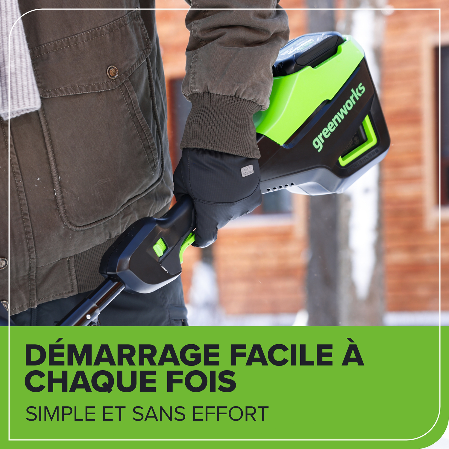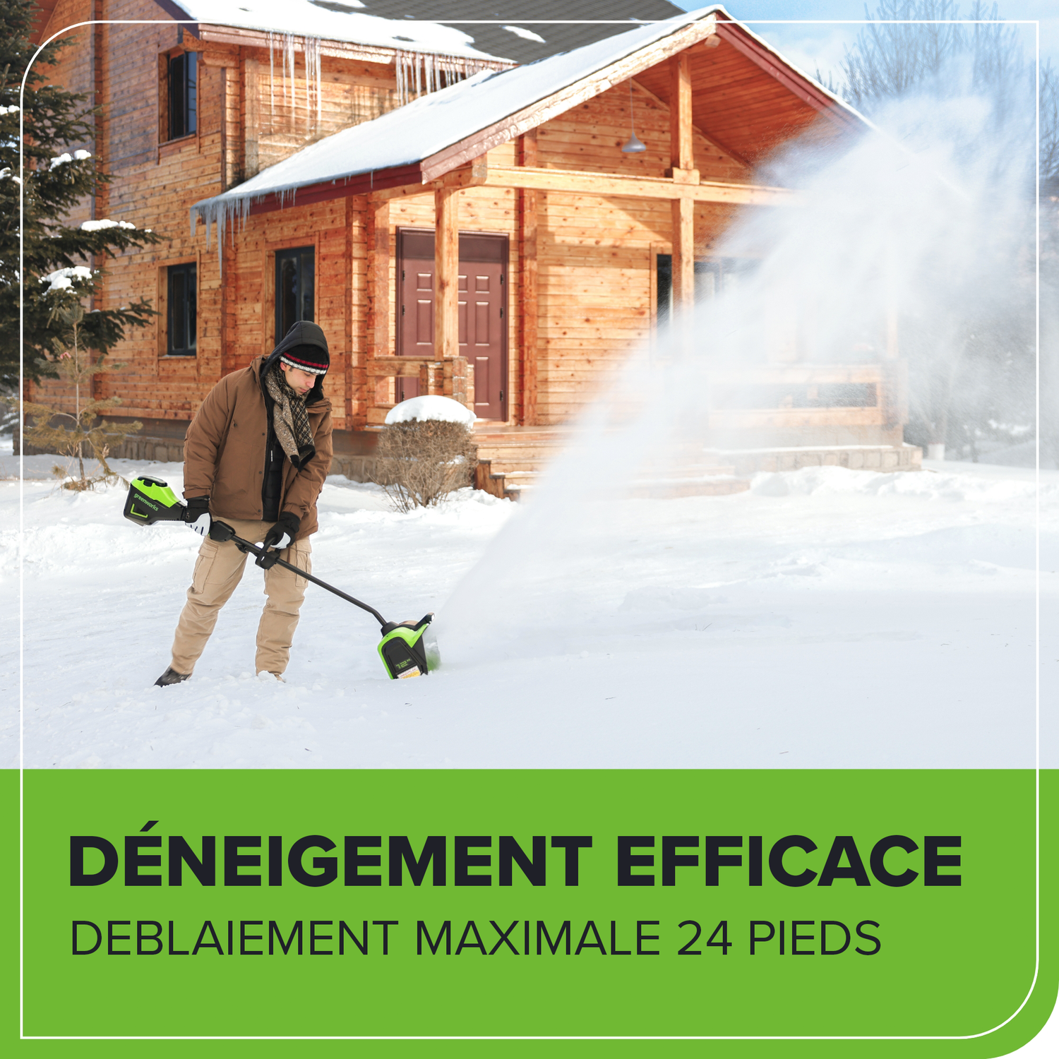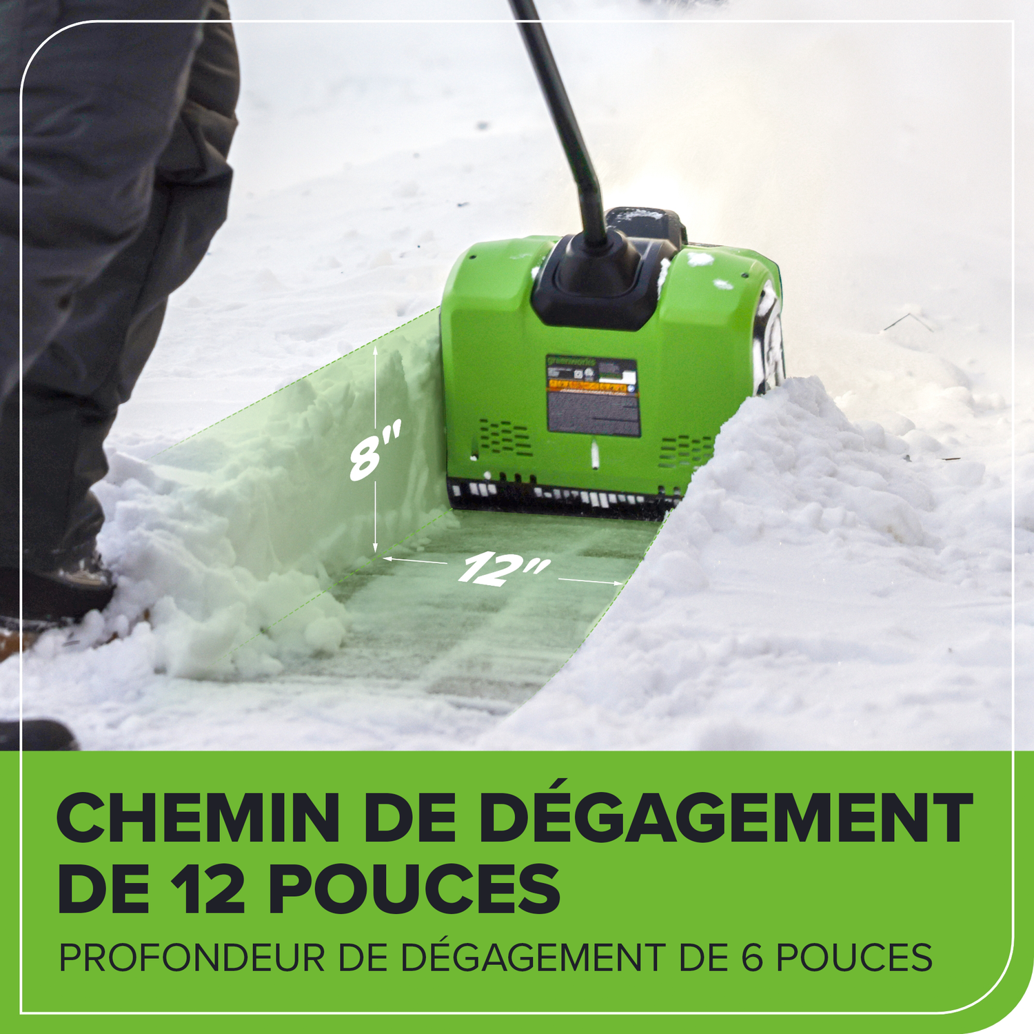 Bienvenue à La Vie. Propulsée. Par Greenworks. Facilitez le dégagement des trottoirs et des entrées cet hiver avec la pelle à neige sans balais Greenworks 80 V 12 po. Construite avec un moteur sans balais à haut rendement de 2,5 kW et une turbine à deux vitesses offrant des vitesses allant jusqu'à 2 500 tr/min, cette pelle à neige impressionnera à coup sûr. DEL lumineuse les lumières et le fonctionnement silencieux le rendent pratique pour une utilisation tôt le matin ou tard le soir. Alimenté par une batterie lithium-ion de 80 V, il présente une largeur de dégagement de 12 pouces et une profondeur de dégagement de 6 à 8 po. Dites adieu au gaz cet hiver et bonjour à Greenworks. Cette pelle à neige est compatible avec le système complet d'outils et de batteries Greenworks 80V. Bénéficiant d'une garantie de 4 ans, cette pelle à neige est conçue pour durer des années.