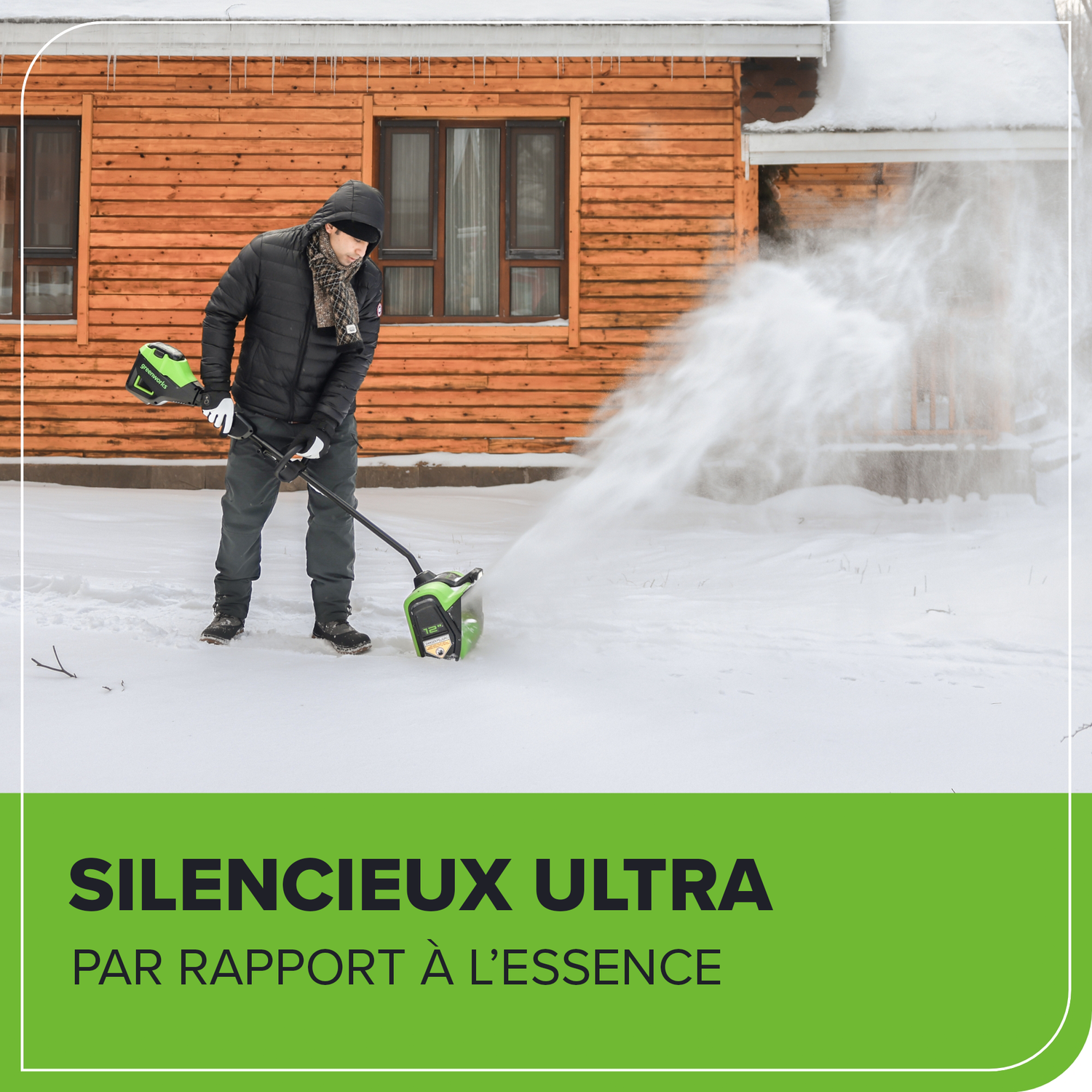 Bienvenue à La Vie. Propulsée. Par Greenworks. Facilitez le déneigement des trottoirs et des entrées cet hiver avec la pelle à neige sans balais Greenworks 80 V 12 po. Construite avec un moteur sans balais à haut rendement de 1,2 kW offrant des vitesses allant jusqu'à 1 800 tr/min, cette pelle à neige impressionnera à coup sûr. Son fonctionnement silencieux la rend pratique à utiliser. tôt le matin ou tard le soir Alimenté par une batterie lithium-ion de 80 V, il présente une largeur de dégagement de 12 po. et une profondeur de dégagement de 6 po. Dites adieu au gaz cet hiver et bonjour à Greenworks. Cette pelle à neige est compatible avec le système complet d'outils et de batteries Greenworks 80V. Bénéficiant d'une garantie de 4 ans, cette pelle à neige est conçue pour durer des années.