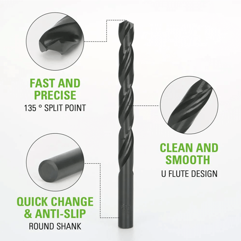 • Offre une durabilité supérieure et une durée de vie jusqu'à 50 % améliorée par rapport aux forets en acier rapide standard. Ils réduisent également la friction, vous offrant ainsi des vitesses de perçage améliorées.