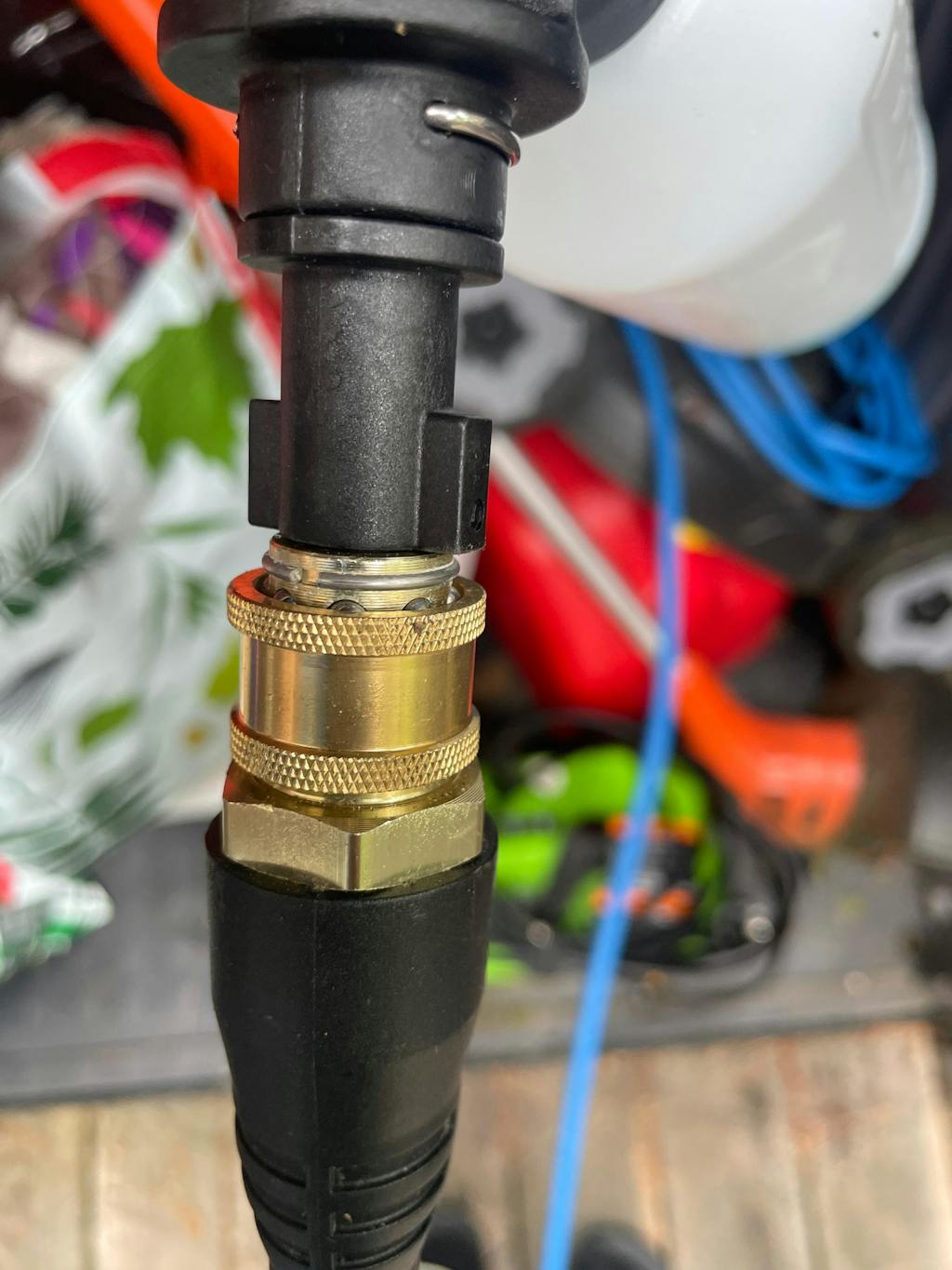 Il existe quelques facteurs qui peuvent provoquer ces réactions, comme un excès d'air dans la pompe ou une buse bouchée/défectueuse. Voir toutes les options de dépannage ci-dessous. Nettoyage des buses obstruées Au fil du temps, les buses de la laveuse à pression peuvent accumuler de la poussière, de la saleté et du calcium, ce qui entraîne un dysfonctionnement de la laveuse à pression pendant son utilisation. Pour nettoyer les buses, faites-les tremper dans un mélange 50/50 de vinaigre blanc et d'eau tiède pendant au moins 15 minutes. Ensuite, passez votre outil de nettoyage de buse ou votre trombone à travers l'extrémité du trou de la buse pour faire sortir les débris. Après avoir fait cela, rincez-les à l'eau tiède. Purger l'air de la laveuse à pression Configurez l'appareil comme d'habitude et assurez-vous de ne pas utiliser de rallonge. Retirez toute buse qui pourrait être connectée à l'extrémité de la lance. Assurez-vous que vous avez un voyant vert sur le DDFT (disjoncteur différentiel de fuite à la terre) du cordon d'alimentation. Allumez votre boyau d'arrosage mais laissez la laveuse à pression éteint. Avec la laveuse à pression éteint, appuyez sur la gâchette pendant environ 3 minutes, en laissant l'eau couler dans l'appareil sans pression. Ce faisant, vous purgez l'appareil de l'air qui pourrait être coincé dans la pompe. Après 3 minutes, rallumez l'appareil. Réinstallez l'une de vos buses propres et continuez à utiliser l'appareil. À ce moment, si l'appareil s'éteint lorsqu'une buse est installée, assurez-vous d'essayer toutes les buses. Une buse défectueuse peut provoquer l'arrêt de l'appareil. Composants supplémentaires à vérifier : • Assurez-vous qu'une buse est connectée. Assurez-vous d'essayer toutes les buses. • Assurez-vous que la source d'eau est complètement ouverte et qu'elle est d'au moins 60 PSI (lb/po²) (consultez : Ma source d'eau doit-elle être d'un certain PSI pour faire fonctionner l'appareil correctement ?) • Vérifiez qu'il y a au moins 10 pi de boyau d'arrosage sans restriction entre le raccord du boyau et l'appareil, tout pli empêchera le débit d'eau d'entrer dans l'appareil et empêchera la pression appropriée. • Pour de meilleurs résultats, utilisez un boyau d'arrosage de 1 po (25 mm) ou 5/8 po (16 mm). • Vérifiez que l'arrivée d'eau n'est pas obstruée. Débranchez le boyau d'arrosage, retirez le filtre et rincez à l'eau tiède. • Assurez-vous d'utiliser une prise qui fonctionne. Assurez-vous d'en essayer plusieurs !